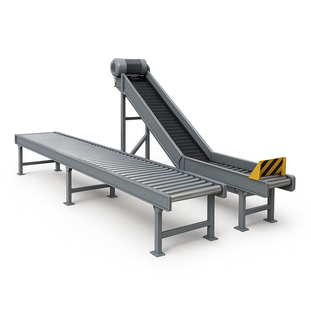 типовые ленточные, роликовые и цепные линии внутри цехов и складов;